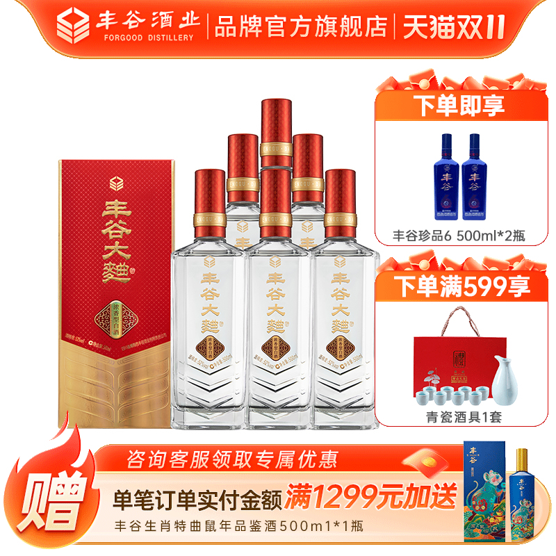 【酒厂直供】 52度丰谷酒王黄金浓香型白酒送礼500ml*6瓶整箱装