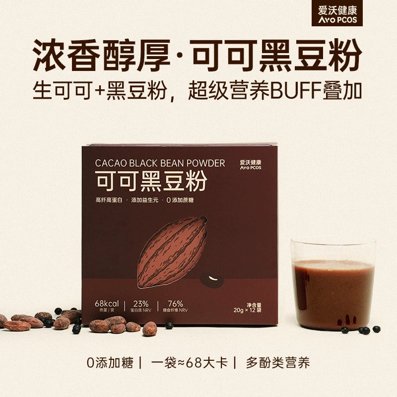 可可黑豆粉爱沃健康AvoPCOS早餐代餐粉可可粉黑豆浆早餐饮代餐饮