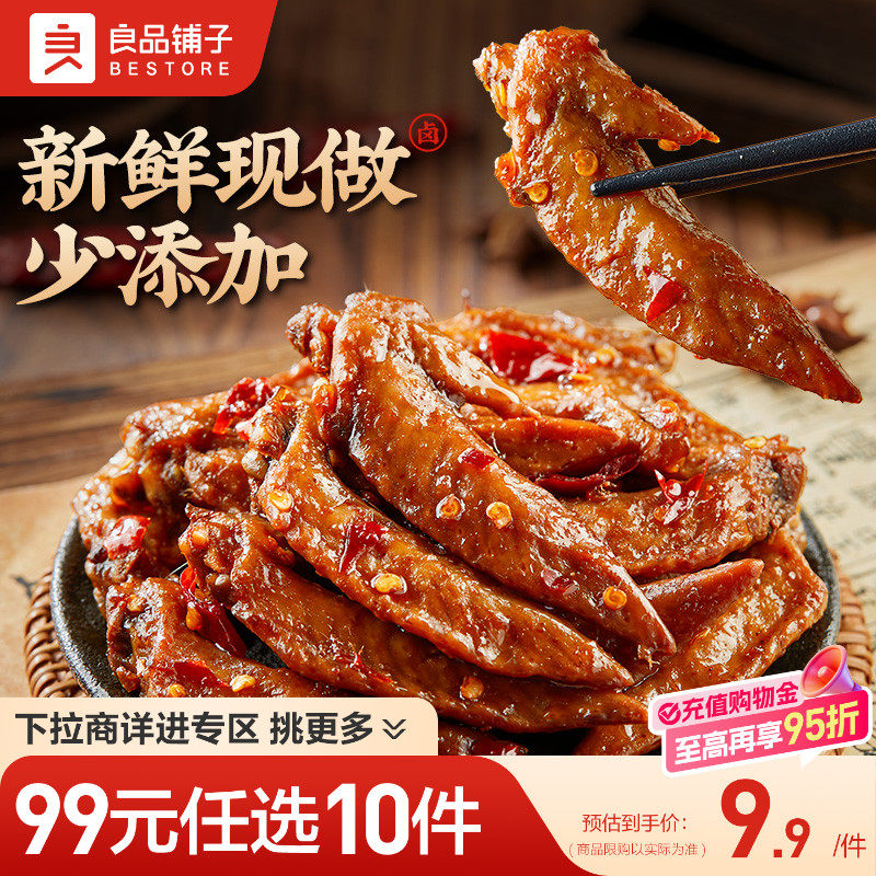 -> 【99元任选10件】良品铺子鲜卤鸡翅尖105g鸡肉即食甜辣宵夜零食