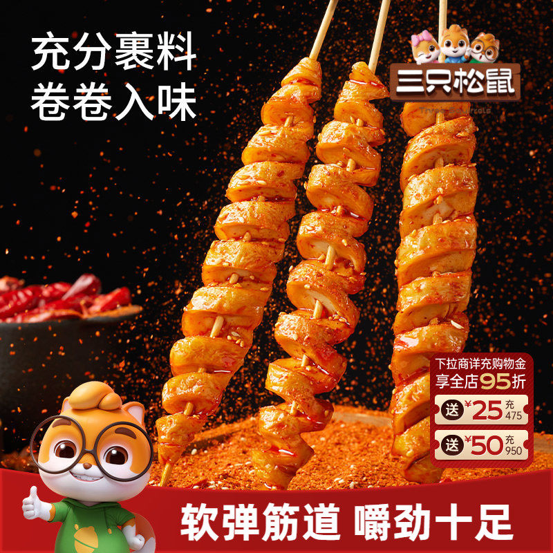 三只松鼠面筋卷250g多种口味休闲解馋零食经典小吃香辣辣条爽口