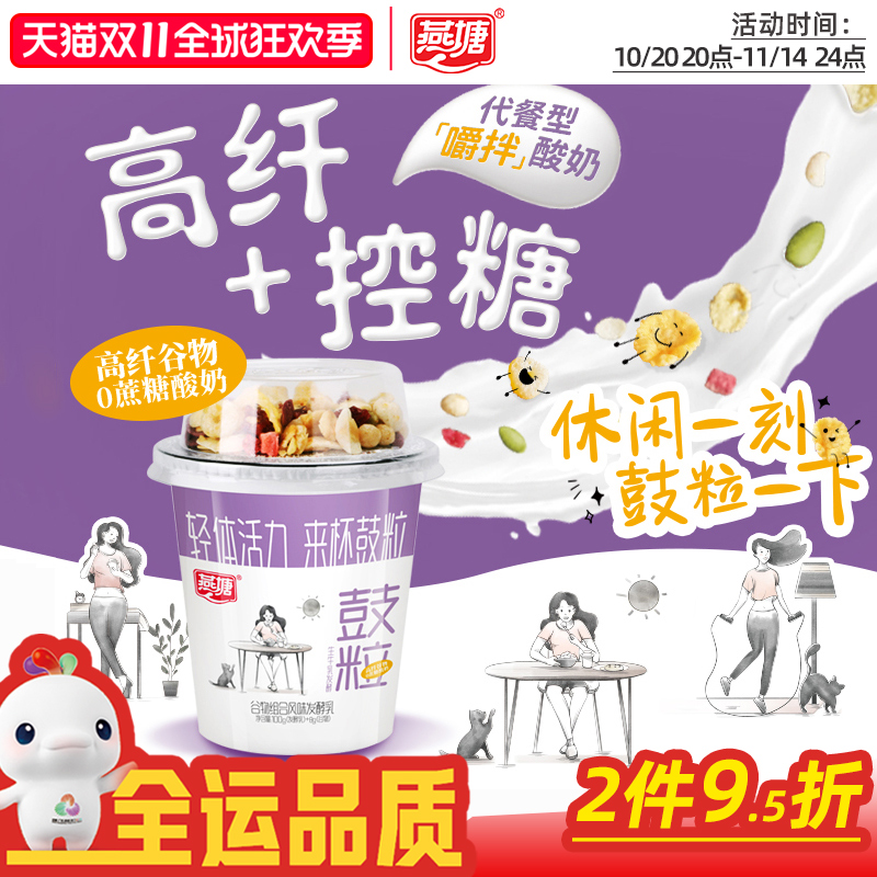 -> 燕塘鼓粒0蔗糖低温风味发酵乳100g+8g燕麦脆高纤控糖嚼拌代餐酸奶