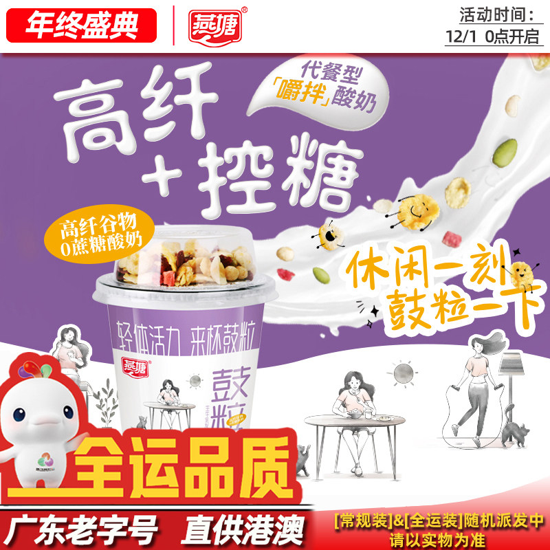燕塘鼓粒0蔗糖低温风味发酵乳100g+8g燕麦脆高纤控糖嚼拌代餐酸奶