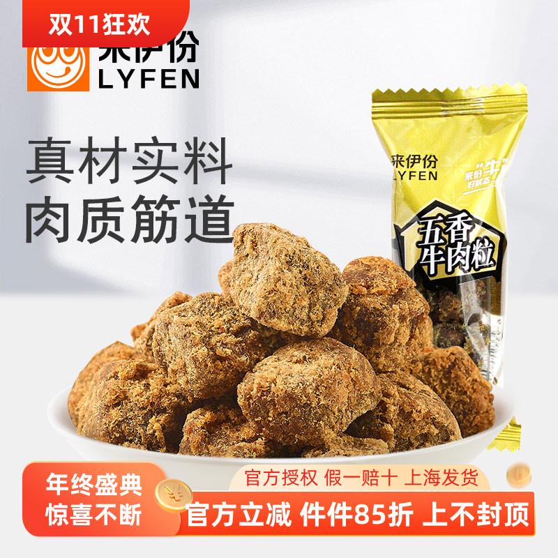 -> 来伊份五香牛肉粒250g风干牛肉粒小食休闲零食网红品特产来一份