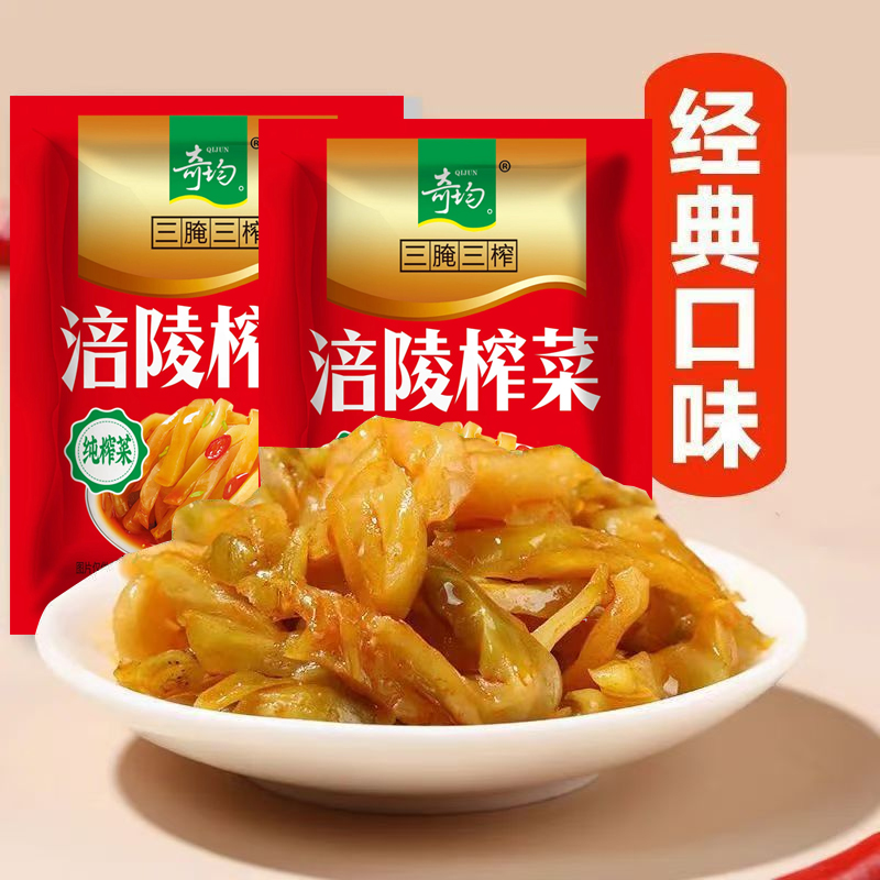 -> 奇均正宗重庆涪陵特产丝小包装52克咸菜泡菜开味下饭菜整箱200袋
