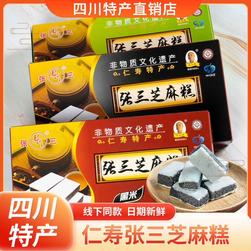 张三黑芝麻糕点150g*3盒糕质细腻香甜化渣零四川眉山仁寿包邮