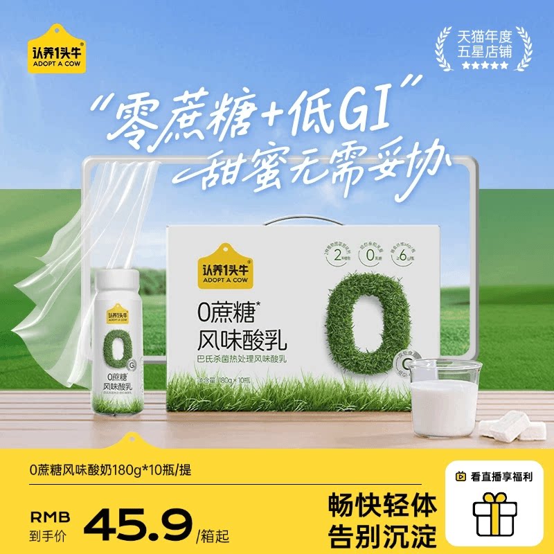 -> 认养一头牛0添加蔗糖代餐能量酸奶180g*10瓶 营养健康控卡零食