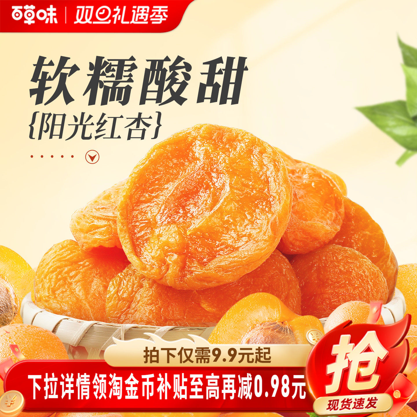 -> 百草味红杏干300g果脯果干无核杏脯肉凉果网红休闲解馋小零食小吃