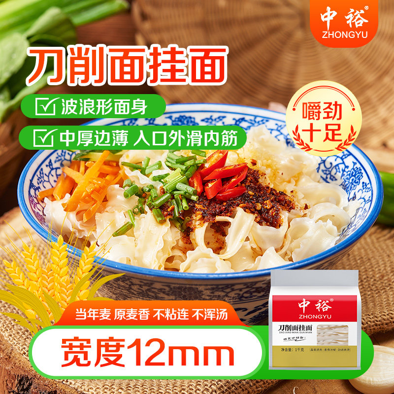 -> 中裕刀削面挂面1kg*3 烩面干面条方便速食煮面 12mm宽面油泼面6斤