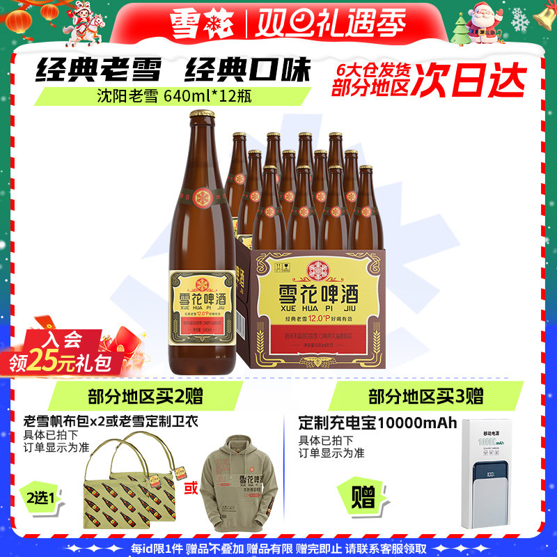 雪花啤酒沈阳经典老雪640ml*12瓶装整箱批发官方旗舰店
