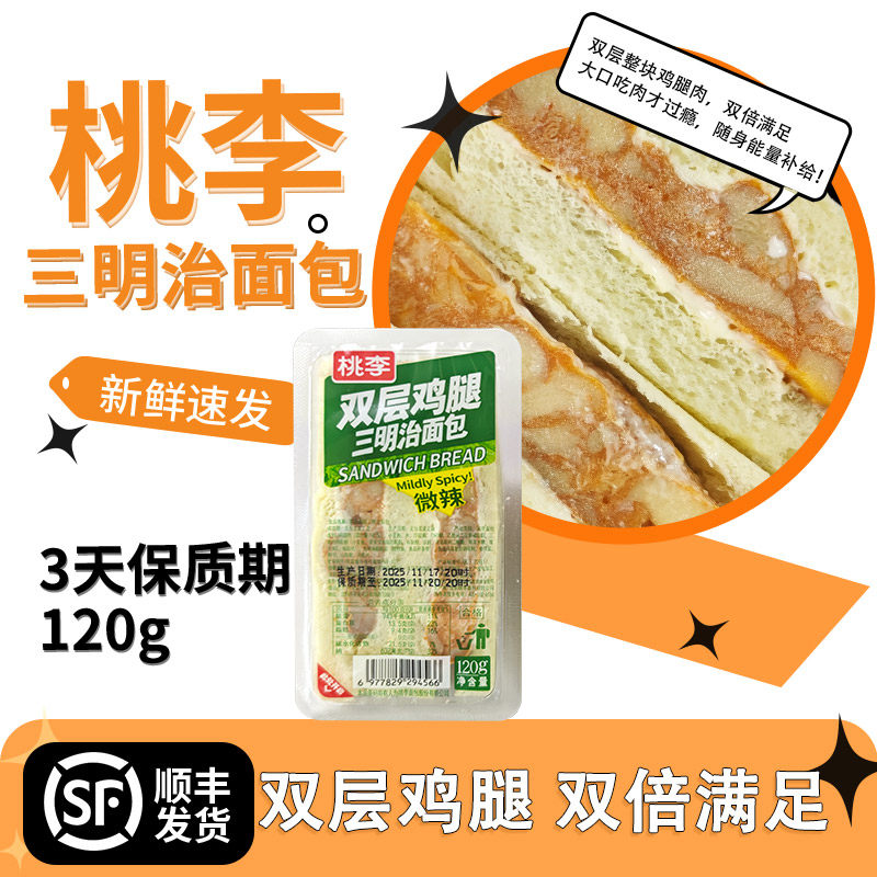 (3天保质期)桃李三明治面包双鸡腿120g营养早餐老味道80怀旧