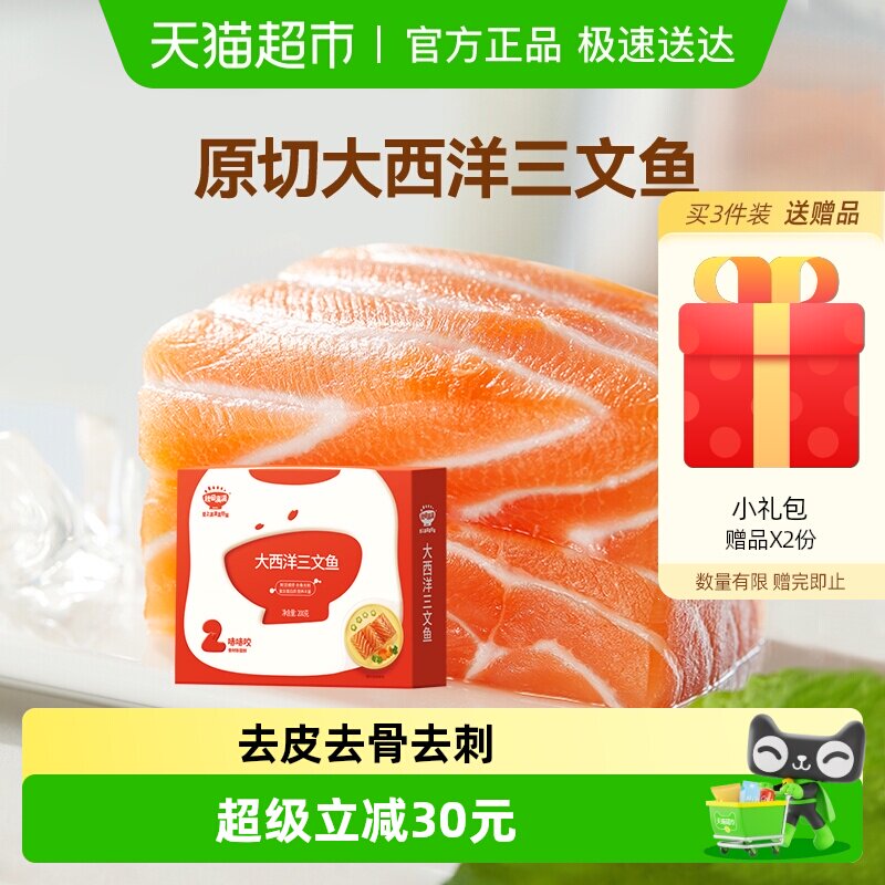 -> 秋田满满新鲜智利进口三文鱼冷冻去刺中段刺身大西洋鱼片鲑鱼海鲜