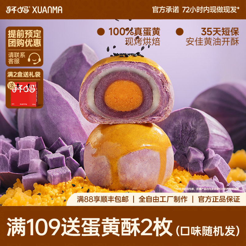 轩妈家蛋黄酥6枚 紫薯味雪媚娘糕点点心网红小吃食品早餐休闲零食