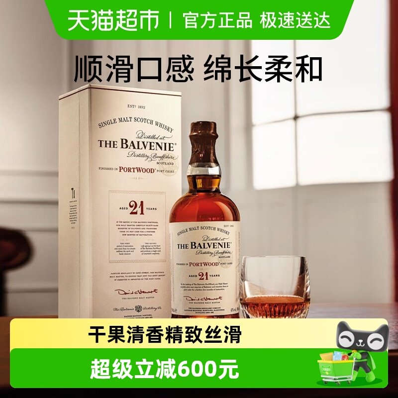 -> The Balvenie百富21年波特桶单一麦芽苏格兰威士忌700ml×1瓶收藏