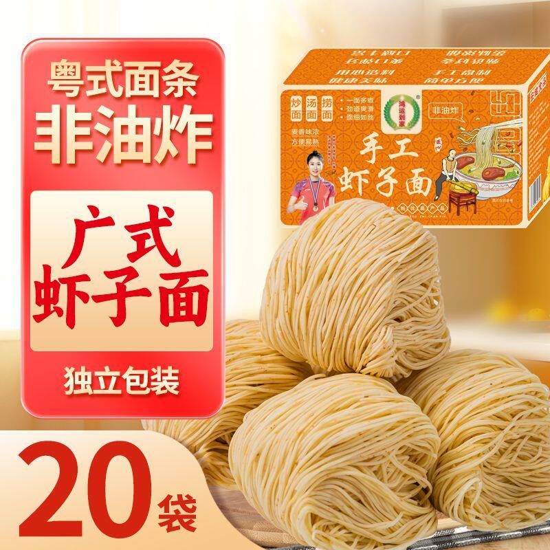 -> 港式虾子面广东非油炸手工面条整箱独立包装广州鸡蛋拌炒竹升面