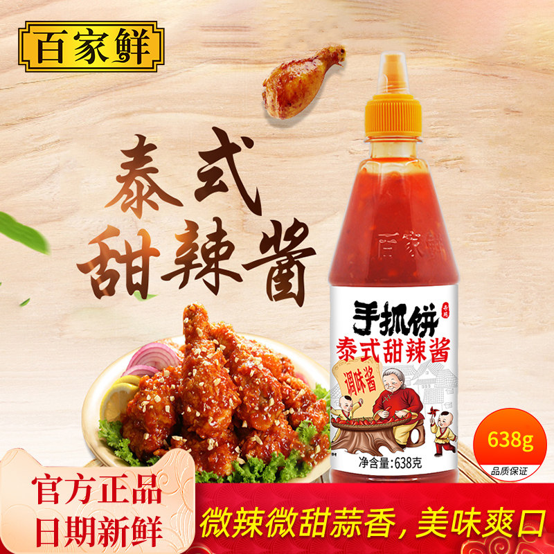 -> 百家鲜泰式甜辣酱638g挤压瓶手抓饼酱0脂肪蒜香炸鸡手抓饼配料