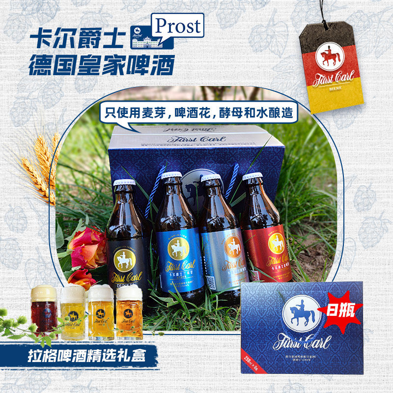 -> 卡尔爵士德国啤酒精酿原浆皇家250ml*12瓶全麦芽拉格黄啤组合礼盒