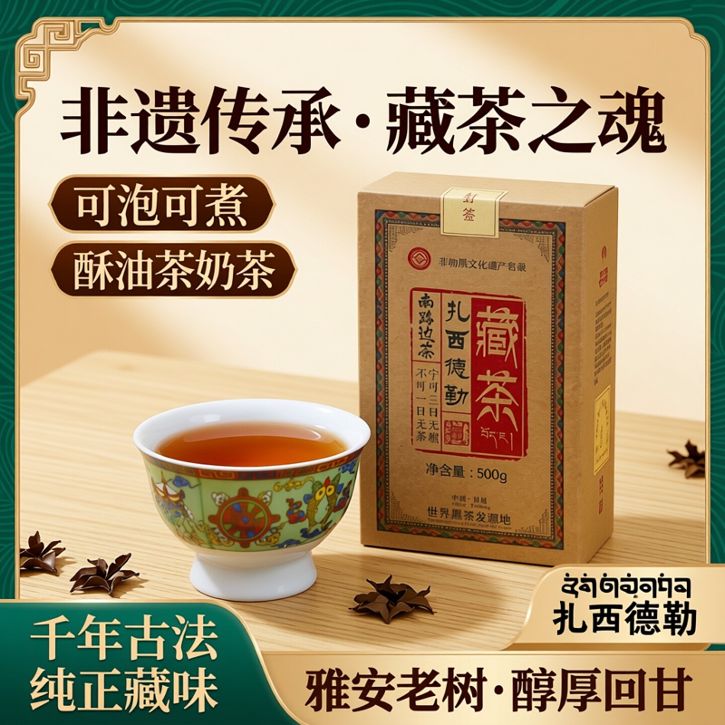 -> 买4送1[扎西德勒]雅安藏茶黑茶砖老树砖茶可泡可煮酥油茶奶茶500g
