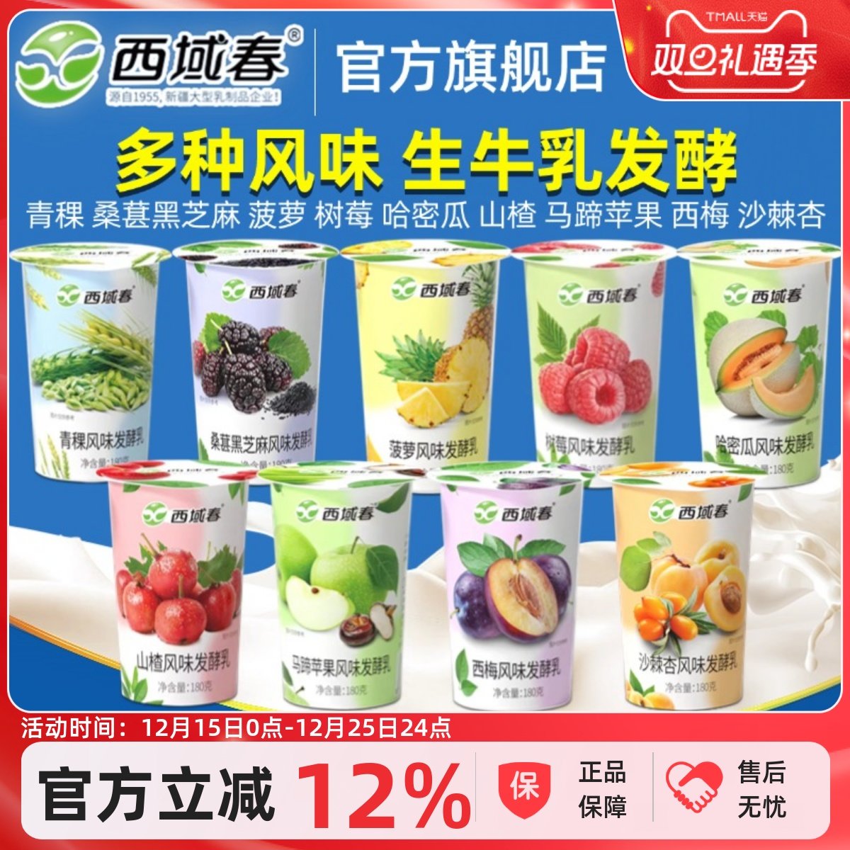 新疆西域春青稞山楂西梅哈密瓜菠萝桑葚沙棘杏酸奶口味随机发12杯