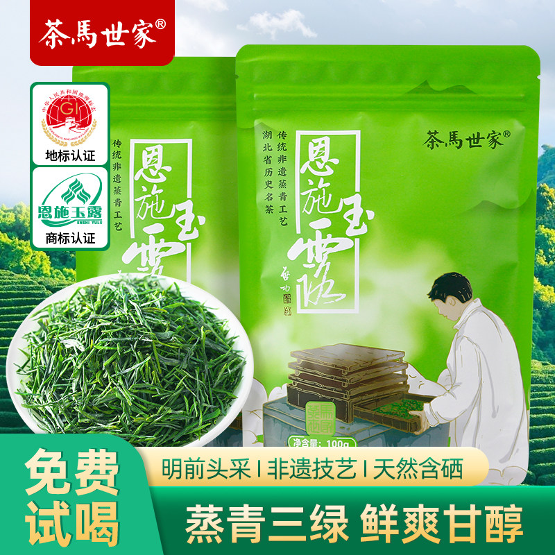 -> 恩施玉露茶叶蒸青明前新茶特一级高山云雾硒茶春茶自己喝口粮绿茶