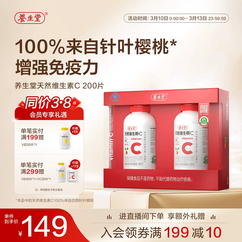 -> 养生堂天然维生素C咀嚼片vc130片官方正品增强免疫力70片维C含片