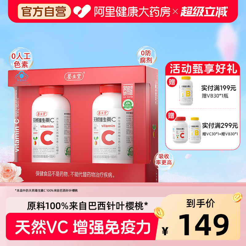 -> 养生堂天然维生素C咀嚼片vc含片增强免疫力维C健康药房官方正品
