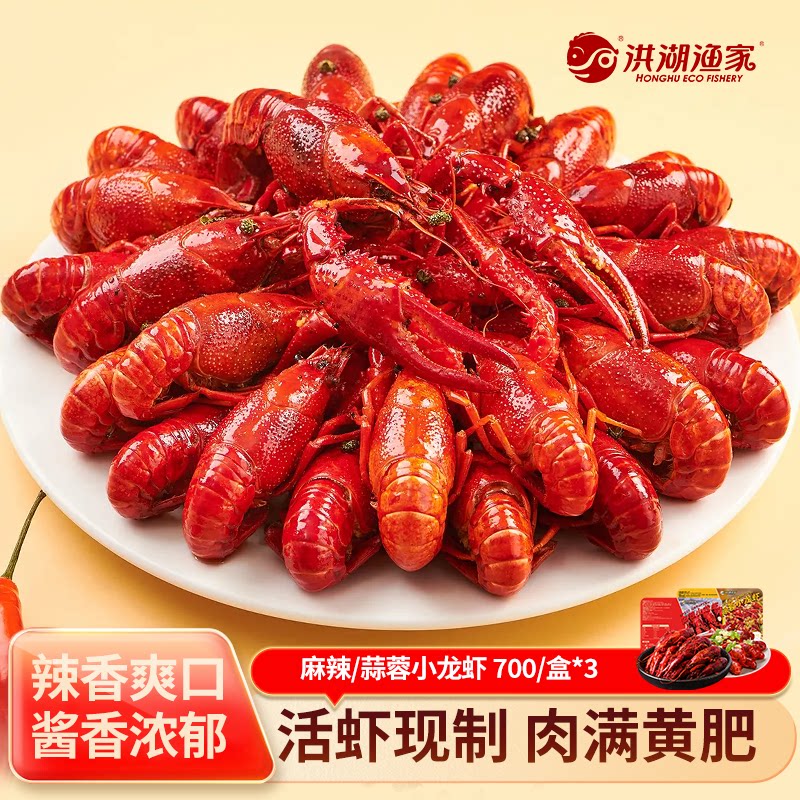 -> 洪湖渔家麻辣蒜蓉小龙虾700g调味龙虾整只加热即食[三盒装]小龙虾