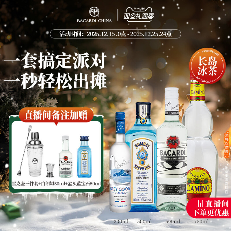-> 【国际大牌】百加得长岛冰茶洋酒调酒朗姆酒金酒伏特加龙舌兰基酒