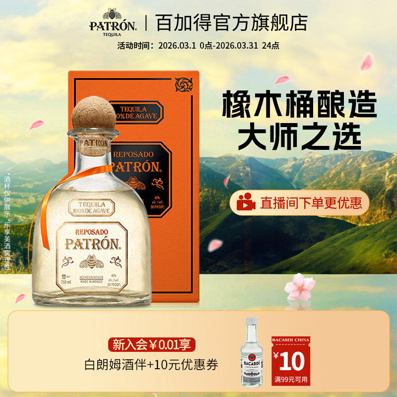 -> 【国际大牌】培恩金樽龙舌兰酒Patron-Reposado鸡尾酒洋酒基酒