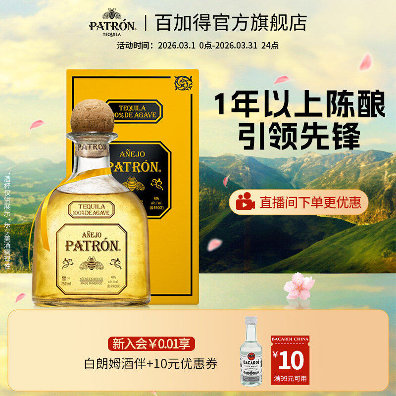 【国际大牌】培恩patron anejo墨西哥陈酿金樽龙舌兰酒750ml