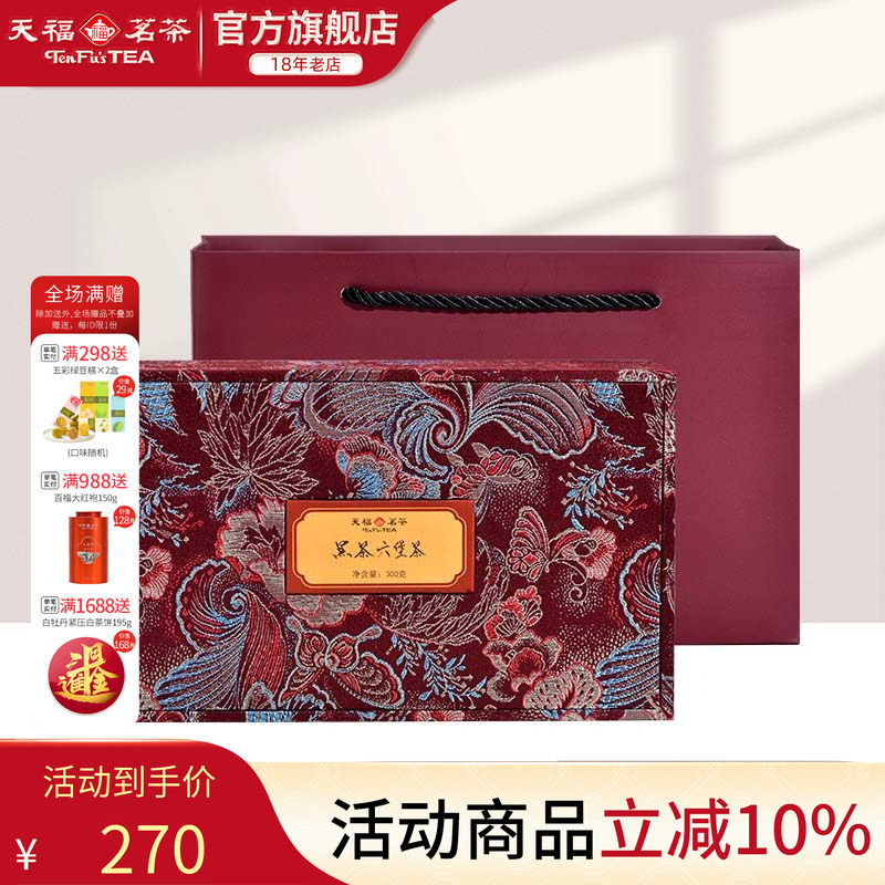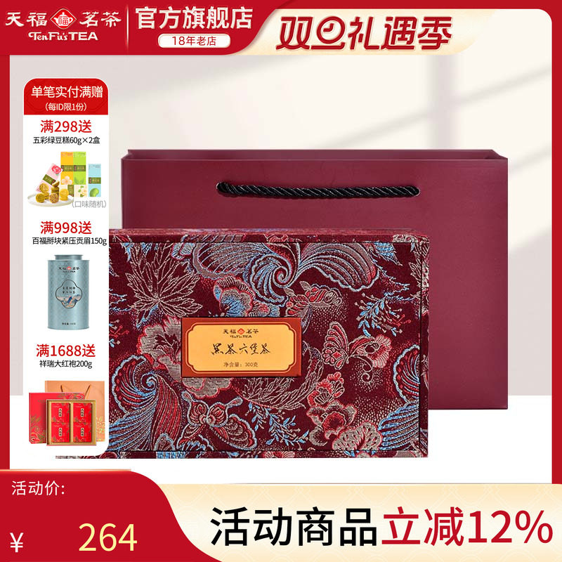 天福茗茶广西六堡茶梧州黑茶散茶礼盒装送礼300g盒送礼