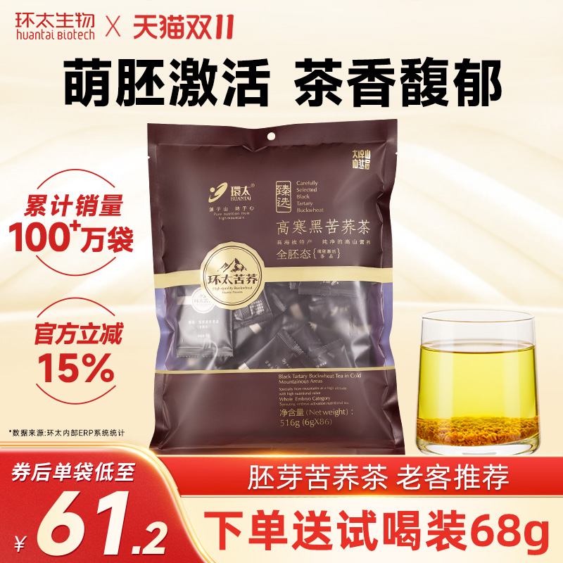 -> 环太旗舰店 高寒黑苦荞麦茶全胚芽态 正品特产级浓香型荞麦茶袋装