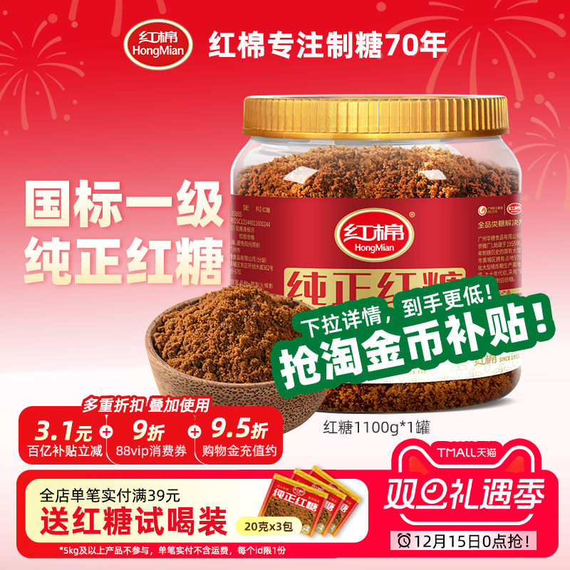 -> 红棉红糖一级纯正甘蔗糖老红糖黑糖姜茶用官方旗舰正品批发红糖粉