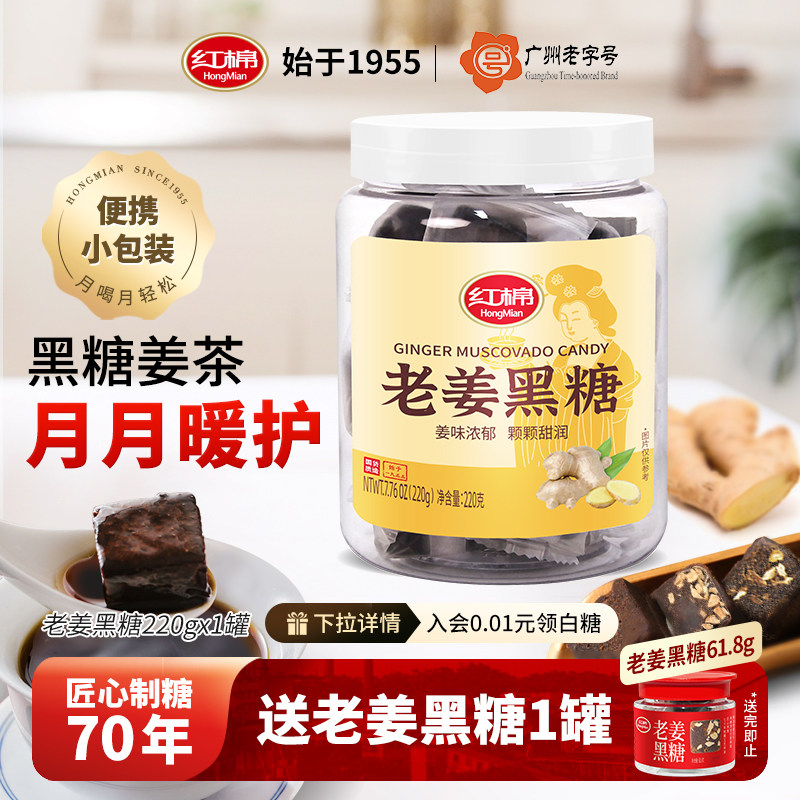 -> 红棉老姜黑糖块独立小包装纯正甘蔗红糖块大姨妈官方正品姜茶黑糖