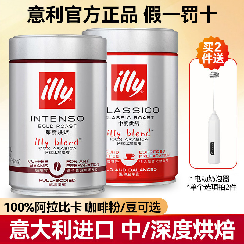 illy意利咖啡粉豆意大利进口意式浓缩中深烘焙现磨黑咖啡250g