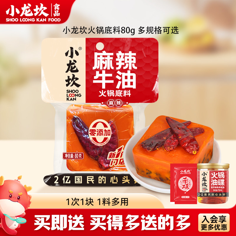 -> 小龙坎牛油火锅底料四川家用小包装80g一人份小块重庆麻辣烫香锅