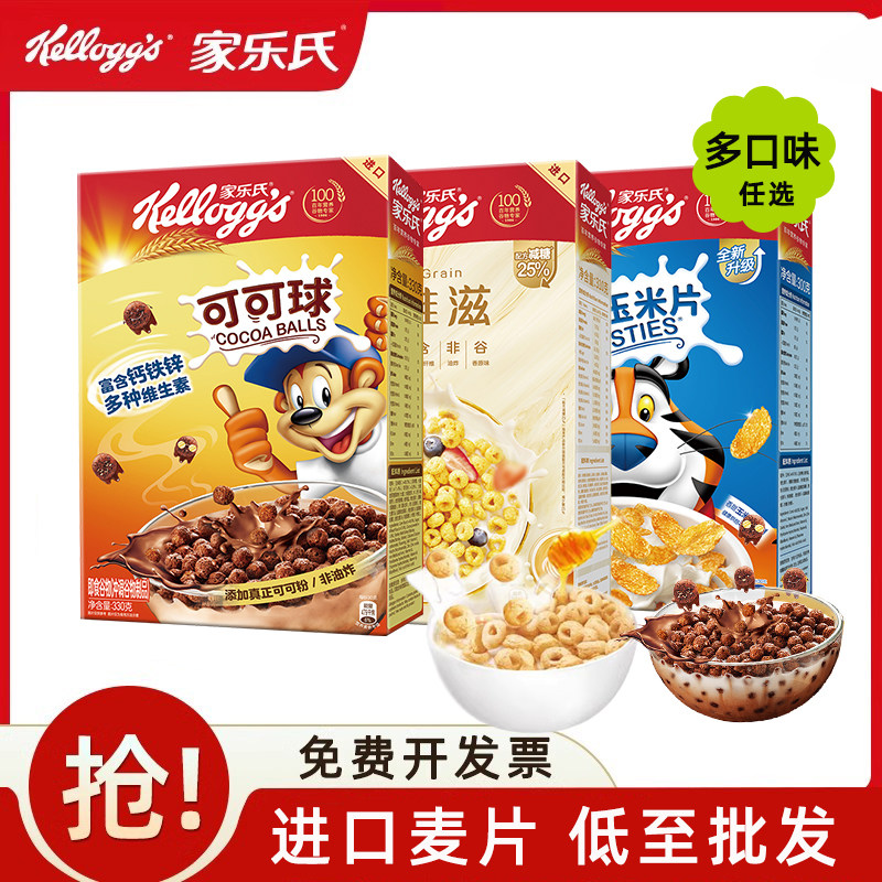 家乐氏麦片儿童早餐谷物麦圈谷维滋可可球玉米片泡牛奶即食冲饮