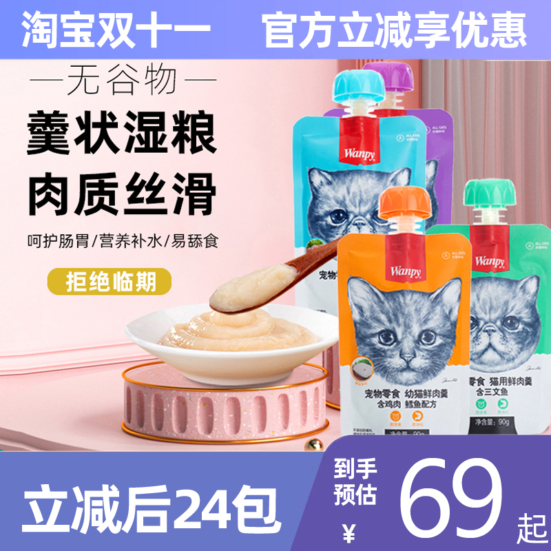 -> wanpy顽皮鲜肉羹鲜封包猫零食湿粮包幼猫营养补水鸡肉猫罐头猫条