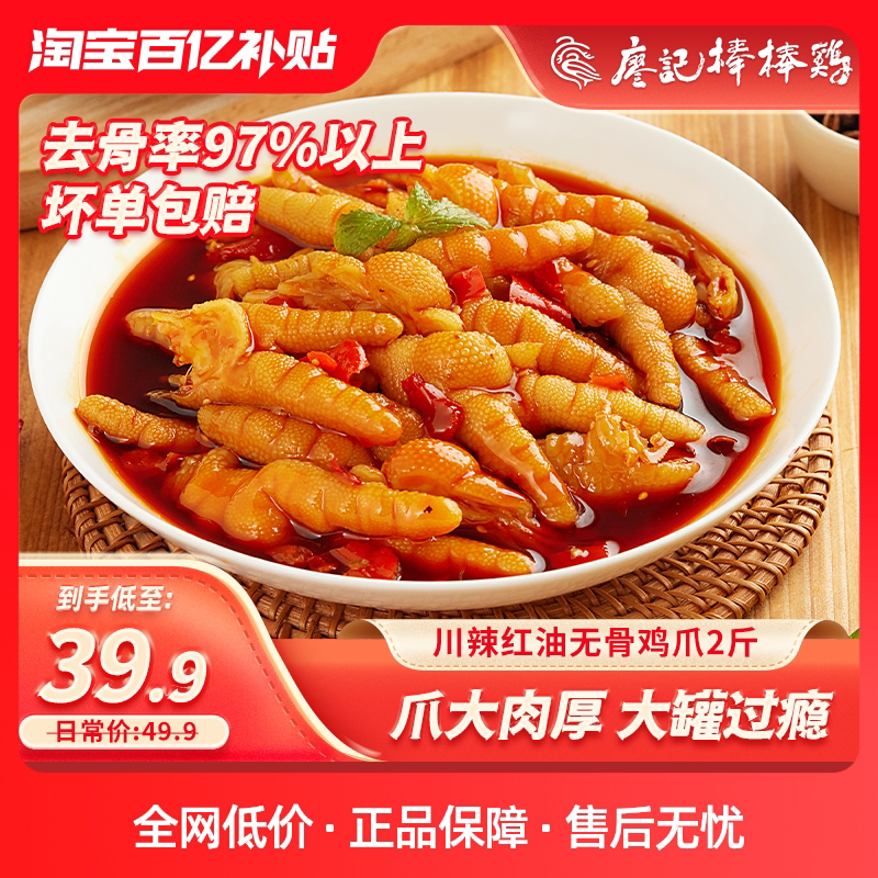 -> 【2斤大罐】廖记川辣红油无骨鸡爪1kg去骨凤爪脱骨网红休闲零食