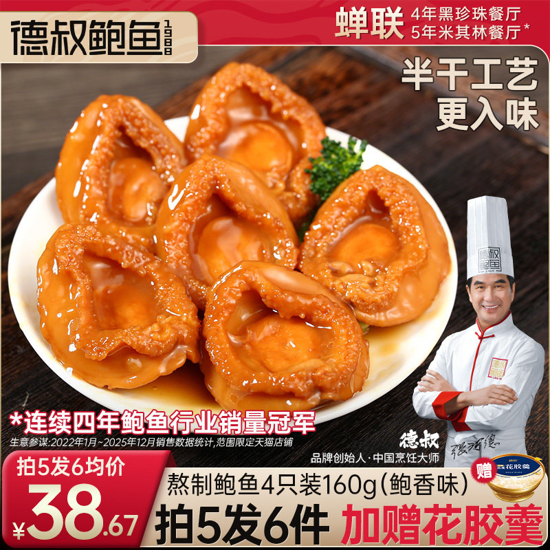 德叔鲍鱼罐头即食海鲜干货佛跳墙加热即食罐装红烧大鲍鱼干袋捞汁