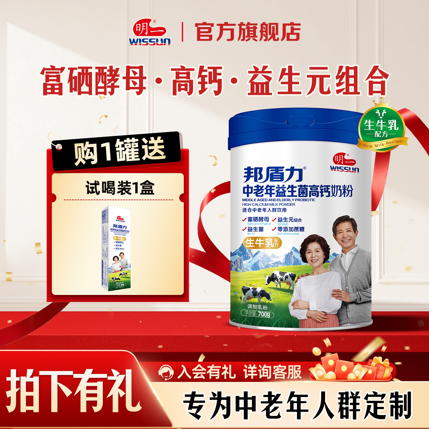 明一中老年益生菌牛奶粉700g含高钙高铁益生菌送礼父母