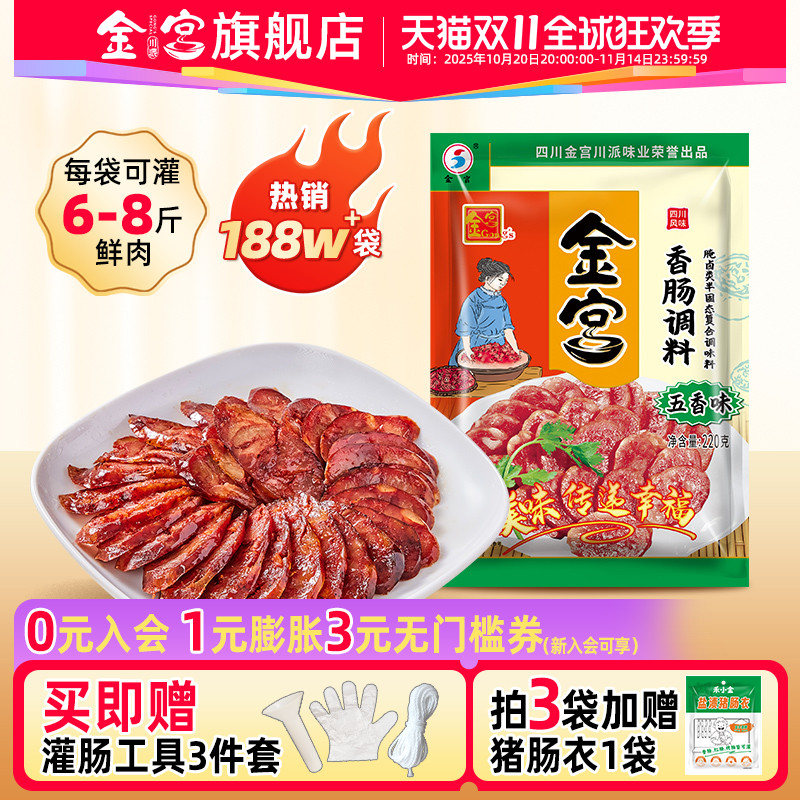 -> 金宫五香香肠调料220g家用自制烤肠灌肠干肠五香味配方腊肠料包