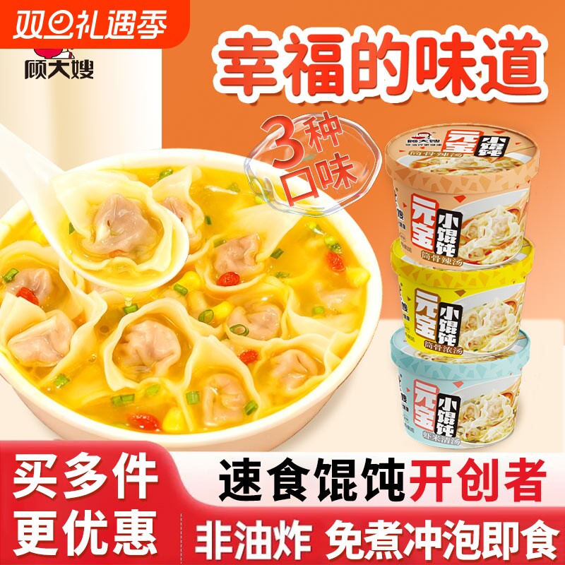 -> 顾大嫂小馄饨小混沌12桶装 云吞面皮整箱速食方便面早餐夜宵食品