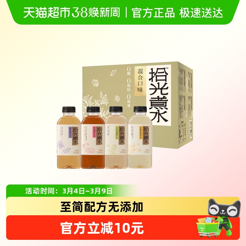 -> 界界乐拾光煮水植物饮料0糖0脂0能量无添加混合口味8瓶畅饮装