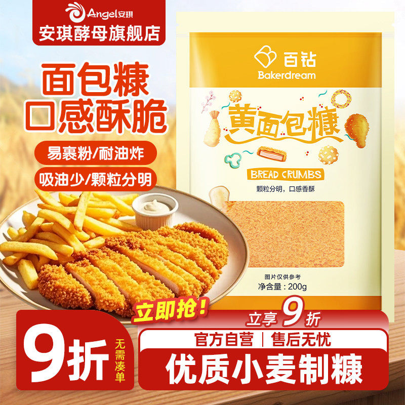 -> 百钻面包糠家用油炸鸡柳香酥南瓜饼香蕉裹粉金黄色白色小包装200g