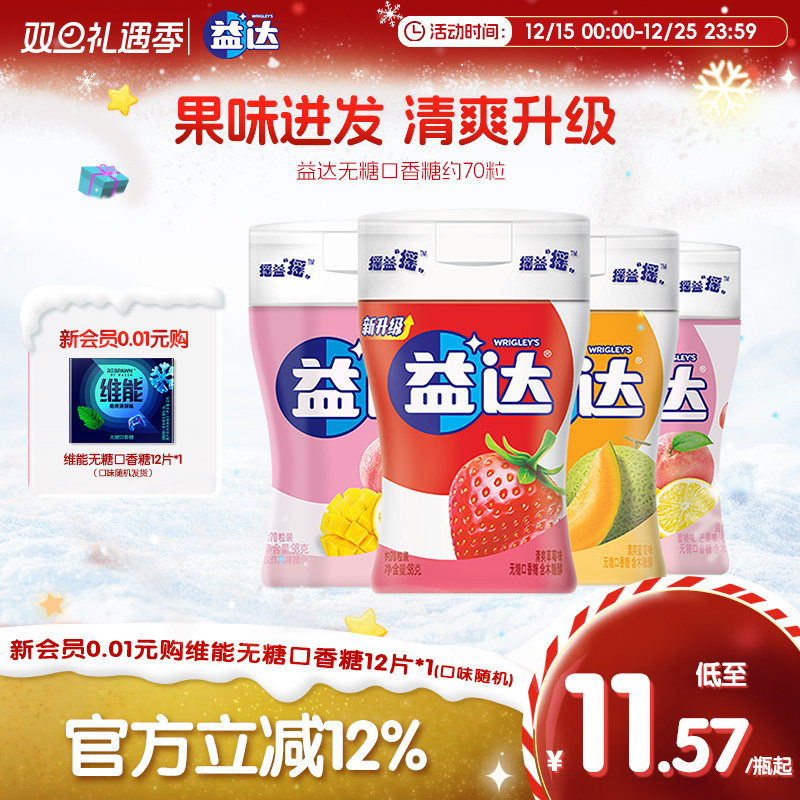 -> 益达口香糖无糖木糖醇约70粒*4草莓水果多口味休闲糖果零食