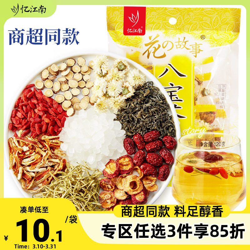 -> 【商超火锅店同款】忆江南茶叶八宝茶金银花茶桂圆红枣120g三泡台