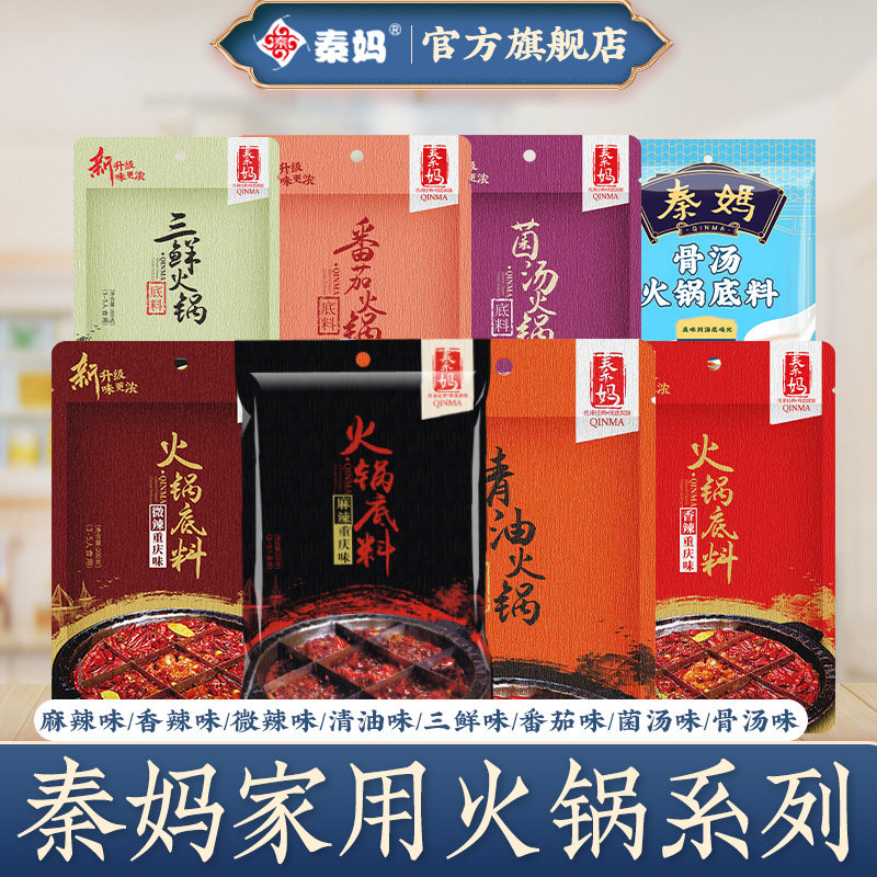 -> 四川重庆麻辣牛油火锅底料 家用秦妈香辣红汤老火锅料调料200g