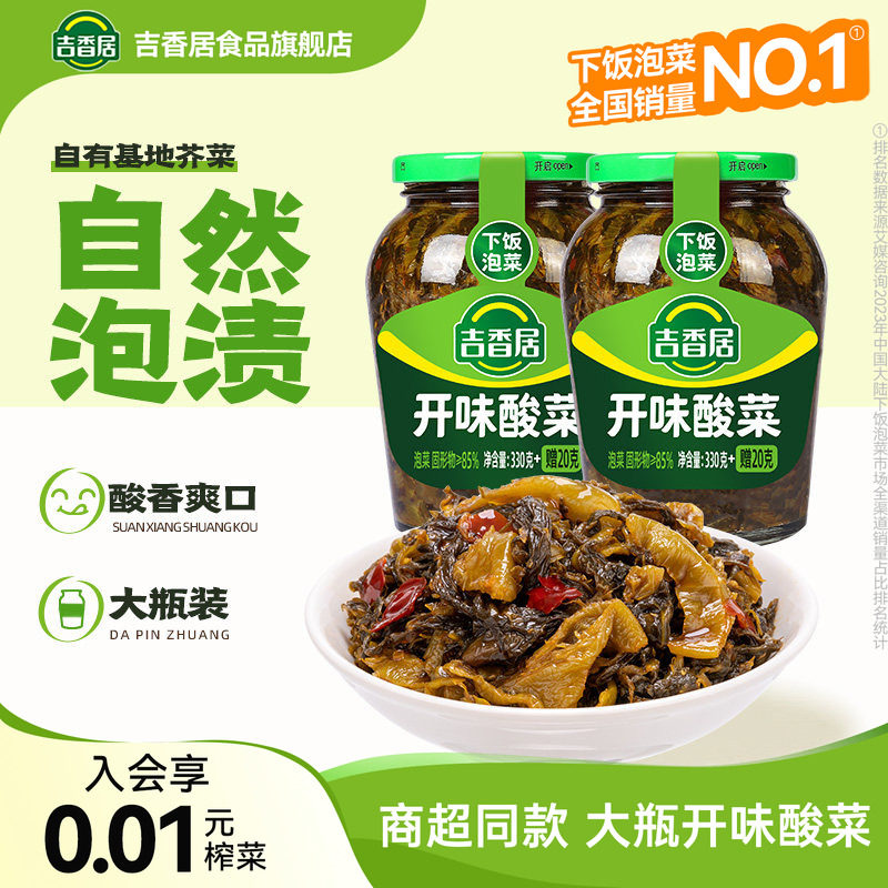 -> 吉香居开味酸菜下饭菜四川泡菜开味酸菜拌饭菜拌面鱼酸菜瓶装