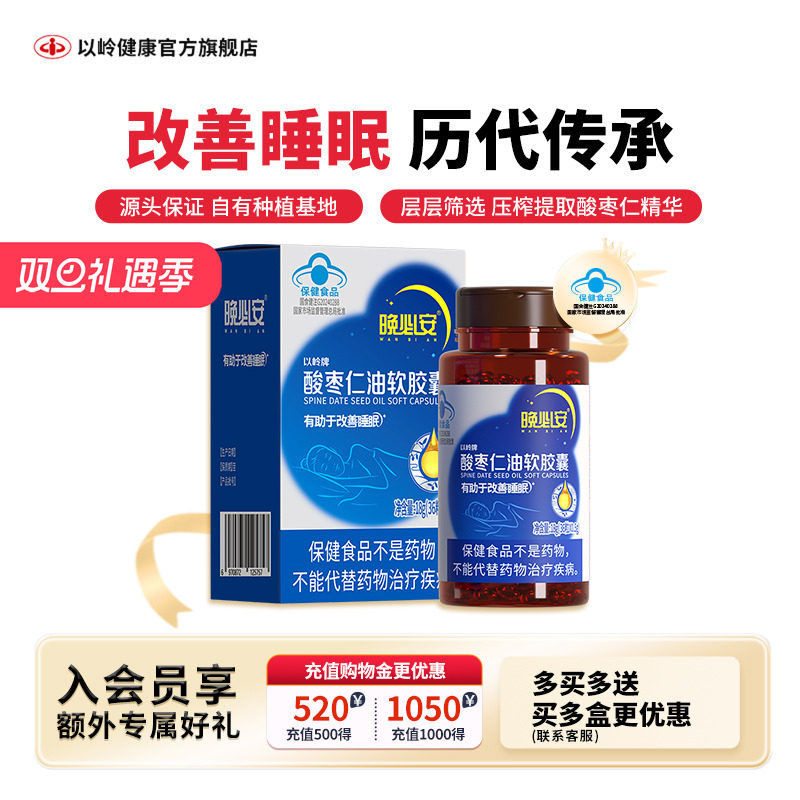 -> 【官方】以岭晚必安酸枣仁油软胶囊36粒改善睡眠睡眠浅非褪黑素