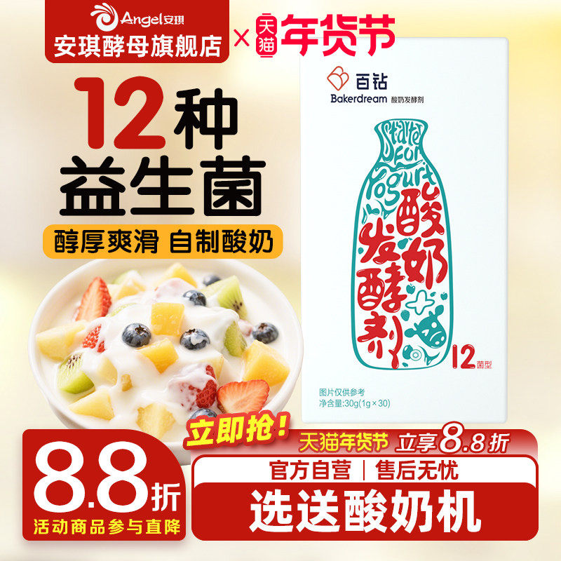 -> 安琪百钻酸奶发酵剂12菌家用做酸奶用的乳酸益生菌粉发酵菌30小包